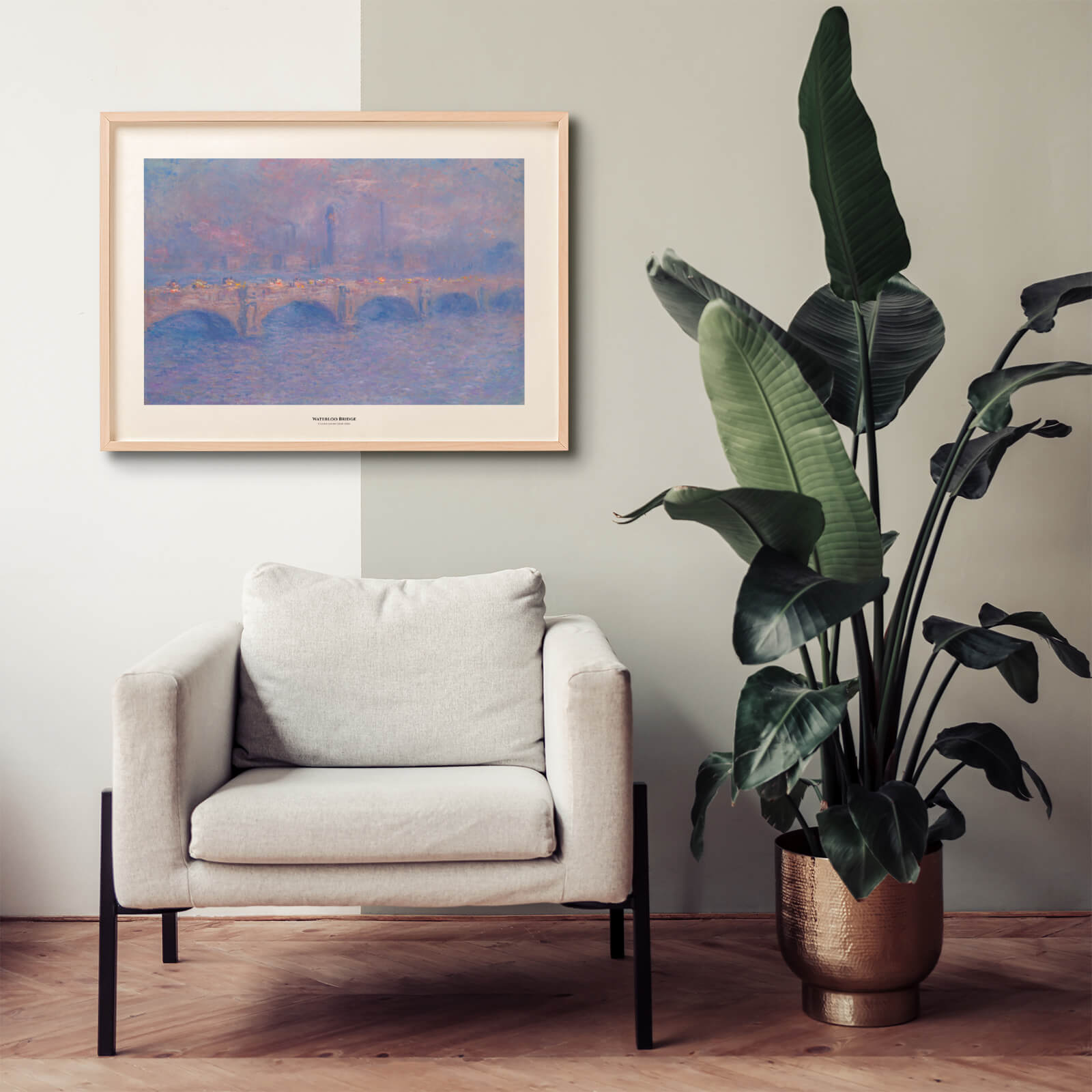 «Hvis det ikke var for tåken», sa Claude Monet en gang, «London ville ikke vært en vakker by. Det er tåken som gir byen dens storslåtte bredde». Da den ikoniske kunstneren laget sin London-serie, våknet han tidlig hver dag for å male Waterloo Bridge om morgenen og Charing Cross Bridge om ettermiddagen. Han studerte fagene fra vinduet på rommet sitt på Savoy Hotel. Dette stykket heter Waterloo Bridge, Sunlight Effect.