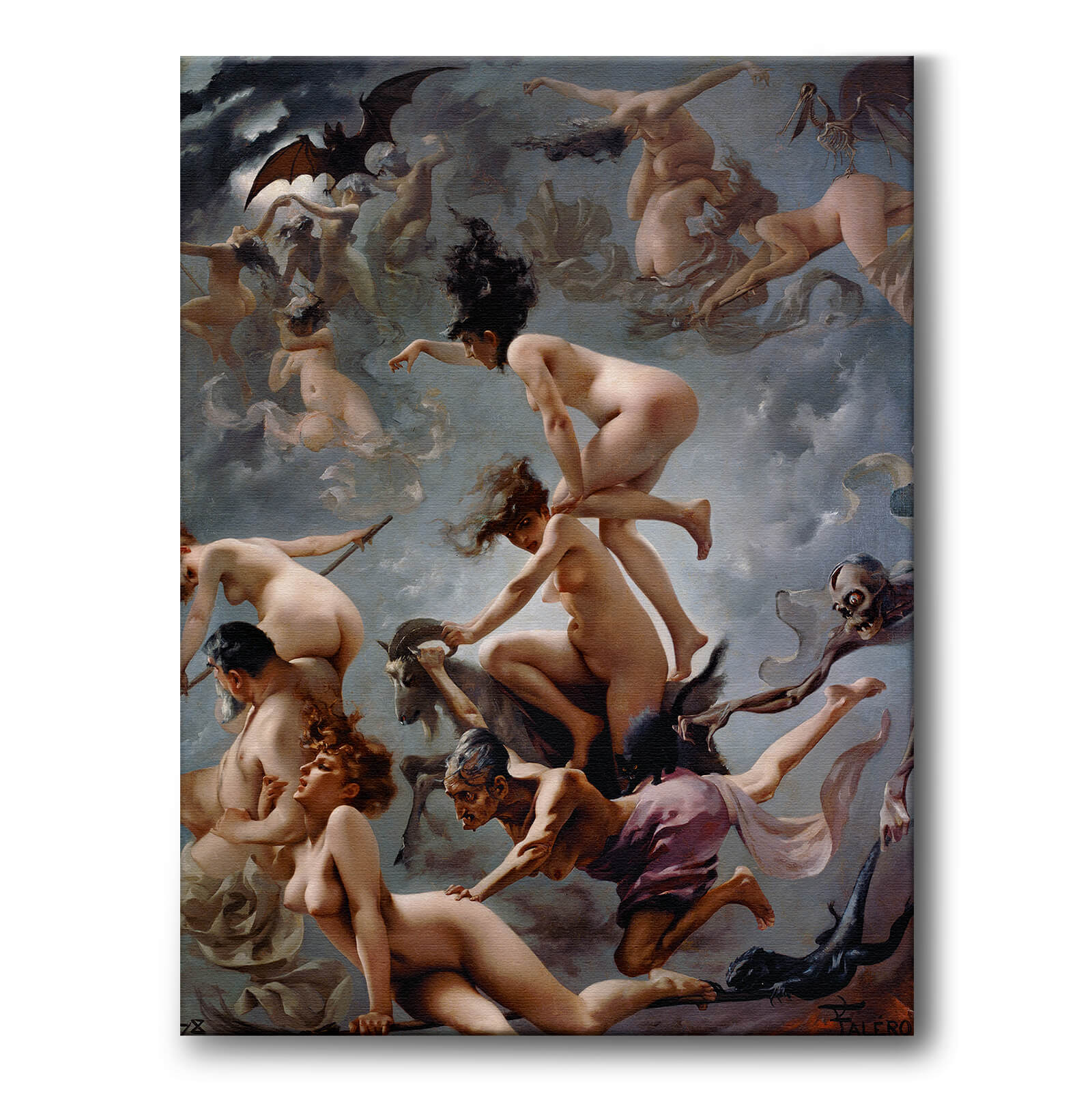Lerret med maleriet Witches going to their Sabbath av Luis Ricardo Falero fra 1878.