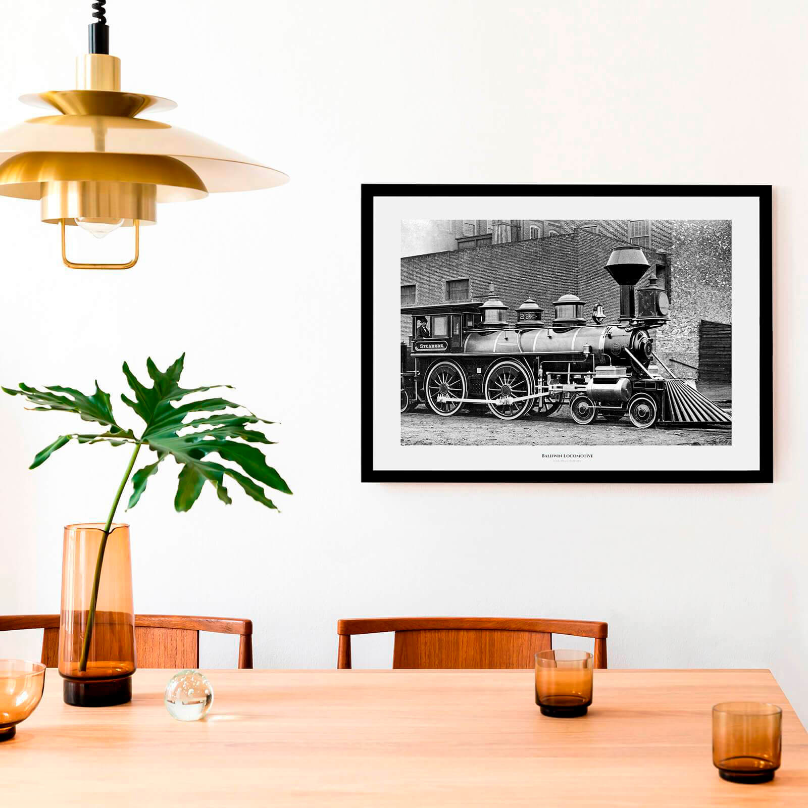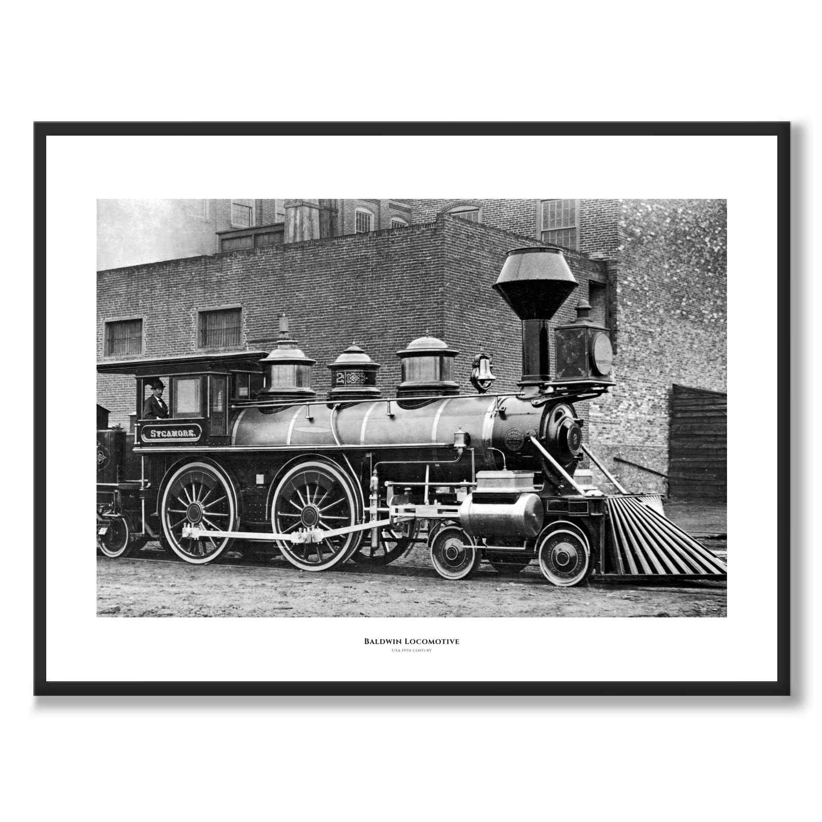 Ett lokomotiv från Baldwin Locomotive Works i Philadelphia på 1800-talet. Bolaget sålde ånglokomotiv mellan 1825-1956, och var i decennier världsledande. När efterfrågan skiftade till dieseldrivna lokomotiv kunde de inte behålla sin konkurrenskraft och ansökte om konkurs år 1972.