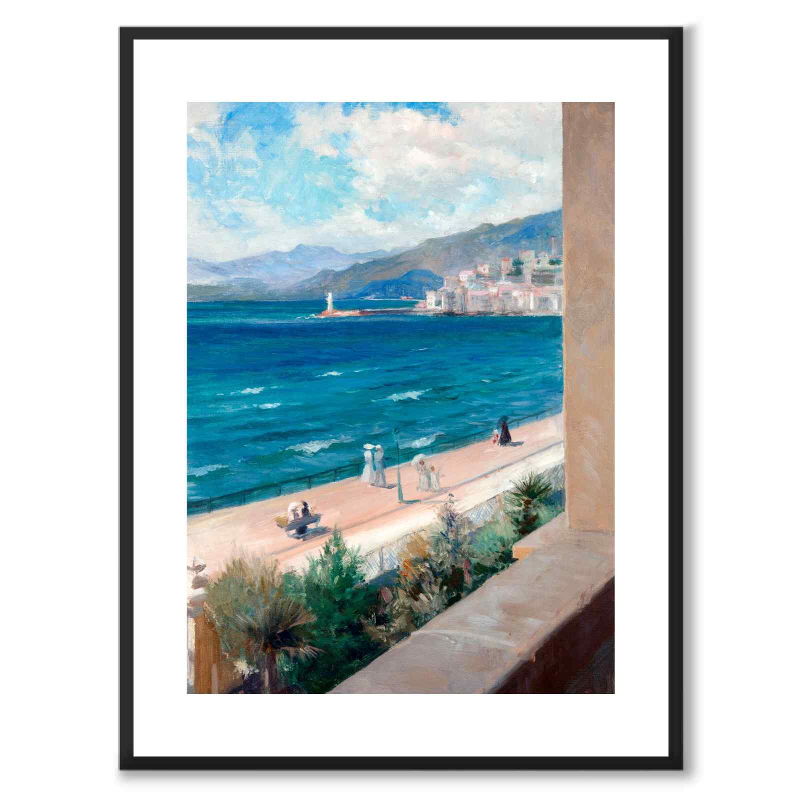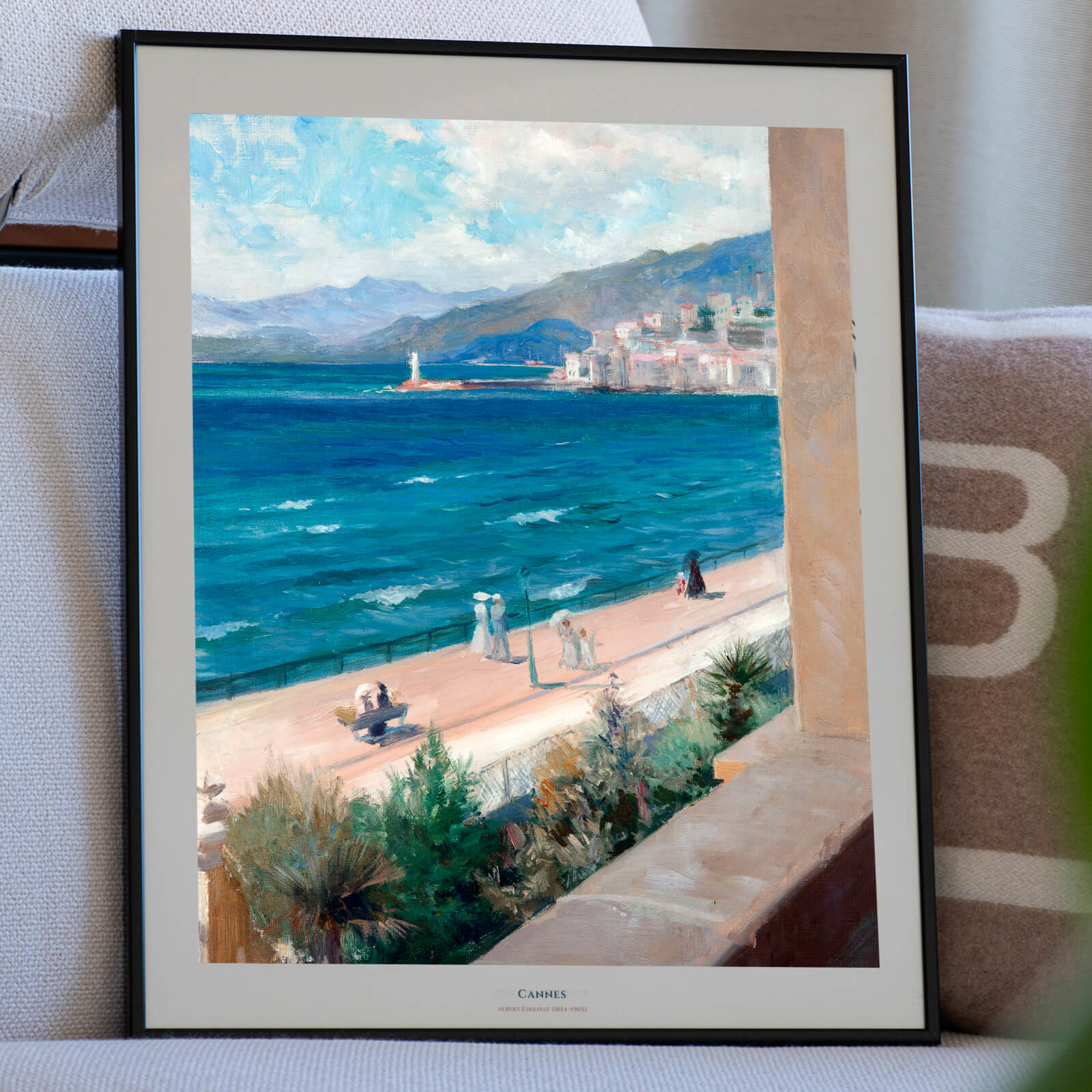 Poster med den vackra målningen Från Mitt Fönster i Cannes av Albert Edelfelt. På bilden ser vi människor i tidtypiska kläder gå längs med strandpromenaden La Croisette.