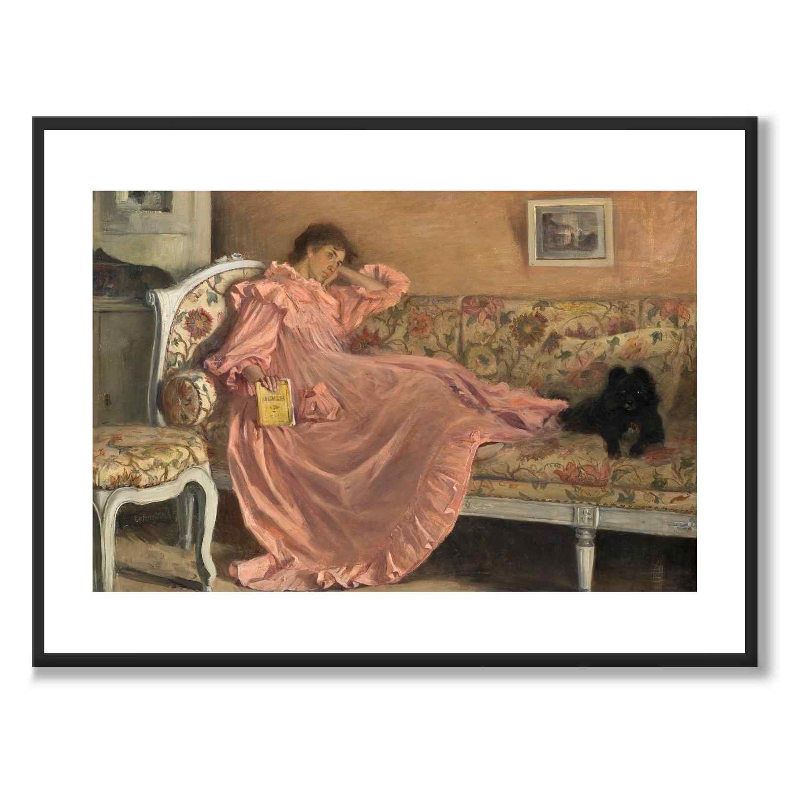 Poster med målningen Carola Sitting on the Sofa av Gustaf Cederström. Målningen är ett porträtt av Gustafs dotter och skulptören Carola Cederström.