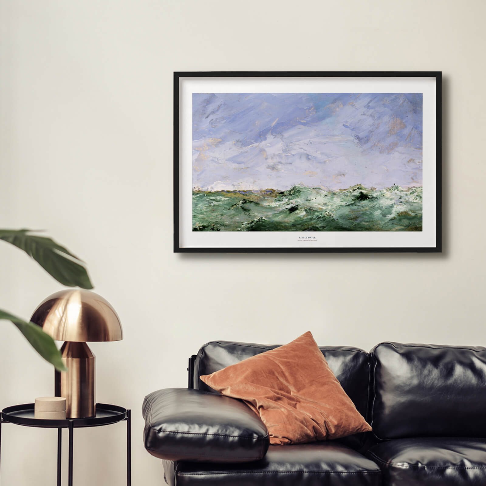 Poster med en målningen Lite Vatten, engelsk titel Little Water av August Strindberg från 1892. Målningen visar Östersjön och blå himmel utanför Dalarö i Stockholm.
