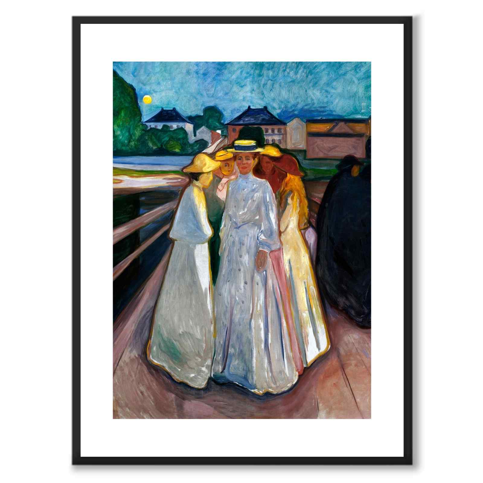 Poster med målningen On the Bridge av den ikoniska, norska konstnären Edvard Munch. Verket målades år 1903 och föreställer några kvinnor på en bro i Munchs sommarstad, den lilla staden Åsgårdstrand i Norge.