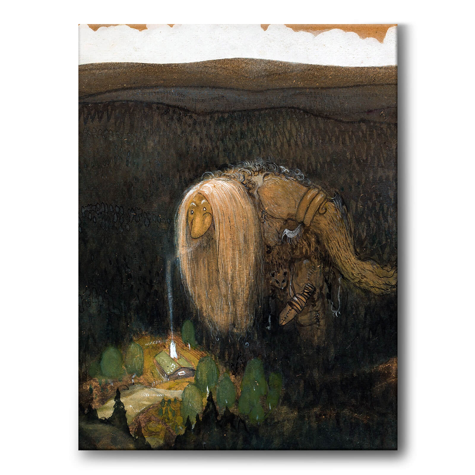 Canvas med målningen Ett Skogstroll av John Bauer från 1909.