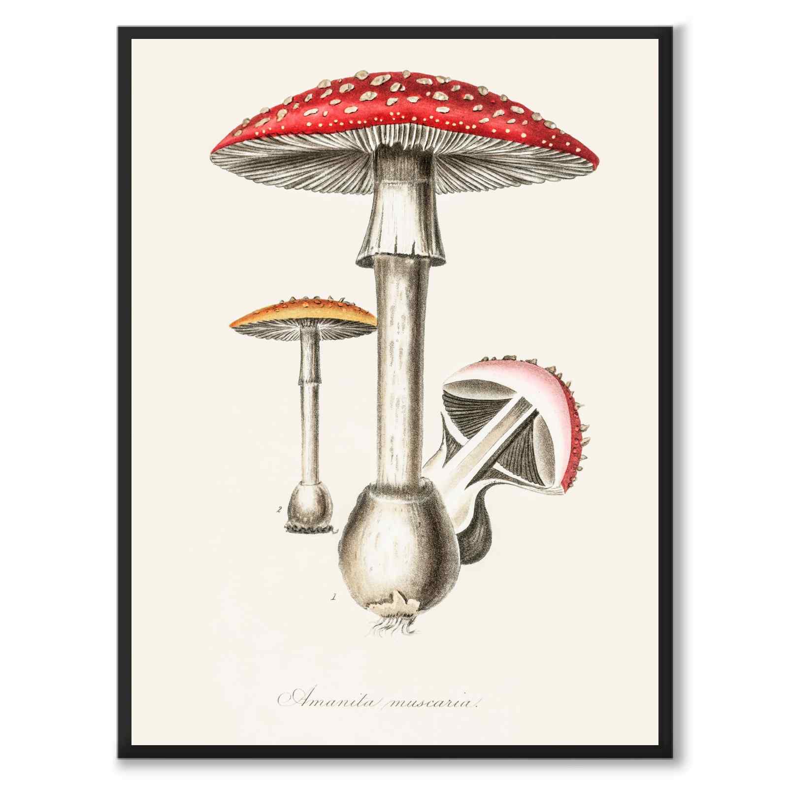 Poster med illustration av flugsvamp, på latin Amanita muscaria, från 1800-talet. Amanita muscaria är en giftig svamp med en karakteristisk röd, orange eller gul hatt med vita prickar.