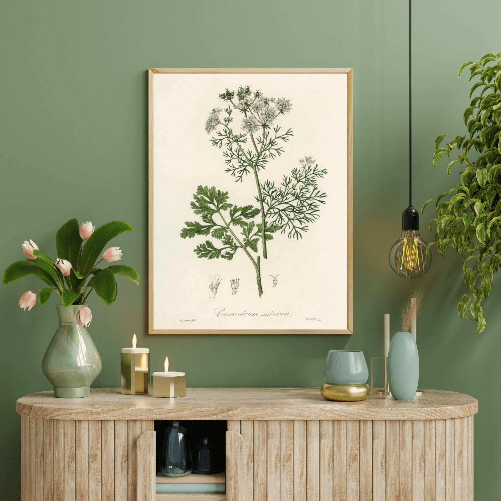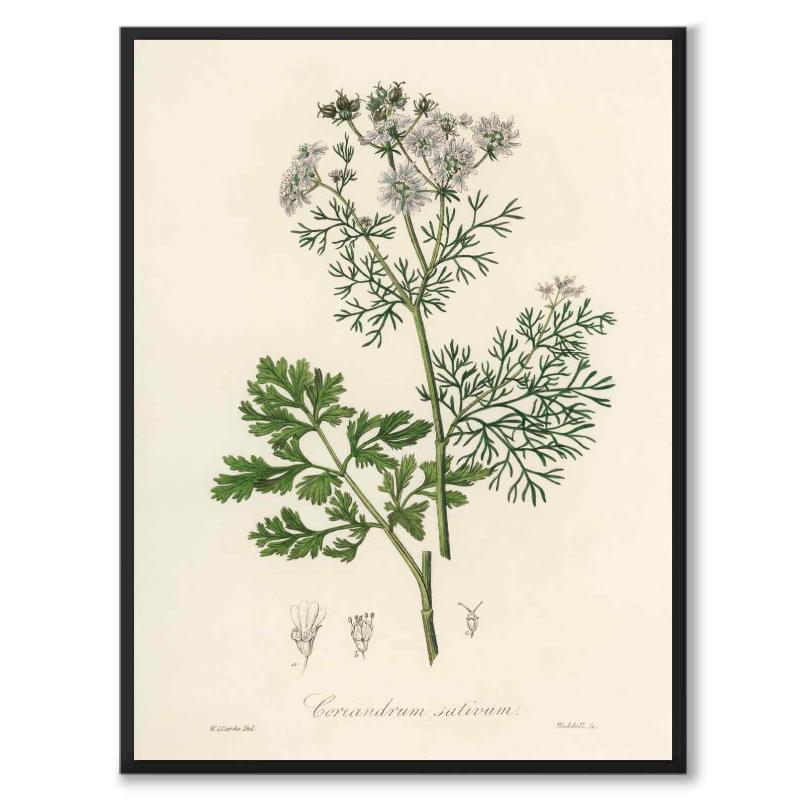Poster med motiv av illustrationen Coriandrum sativum, även känd som koriander, från 1800-talet.