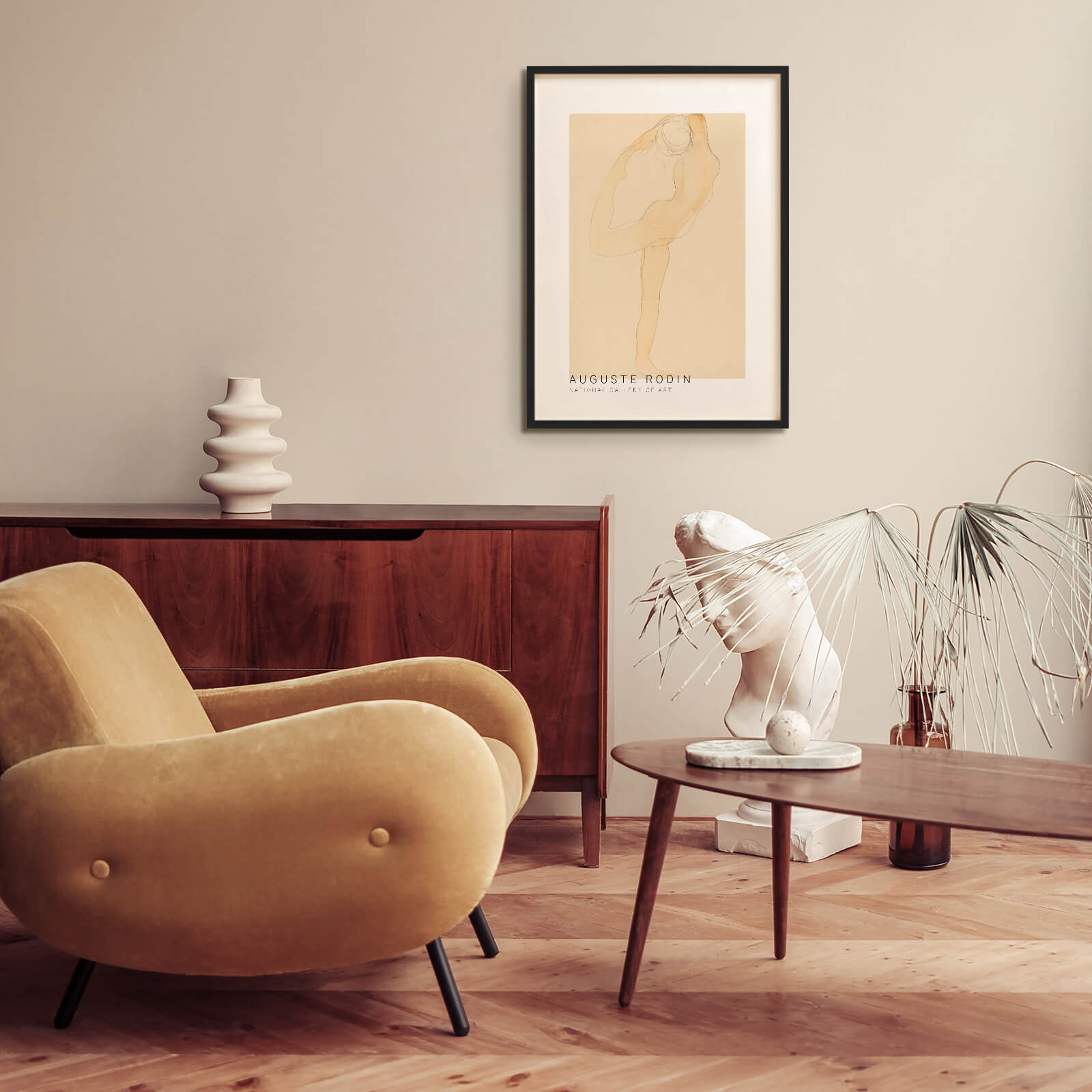 Poster med en vintage nude sketch av den kända skulptören Auguste Rodin (1840-1917). Motivet heter Dancing Figure och skapades år 1905. Originalet finns vid the National Gallery of Art.