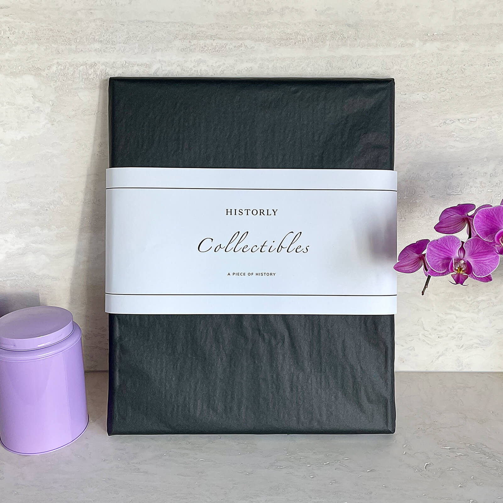 Leveranstid - Normal leveranstid är 5-7 arbetsdagar. Till skillnad från våra posters förvaras vår kollektion av Collectibles fysiskt i vårt egna historiska arkiv och monteras för hand i den exklusiva ramen.