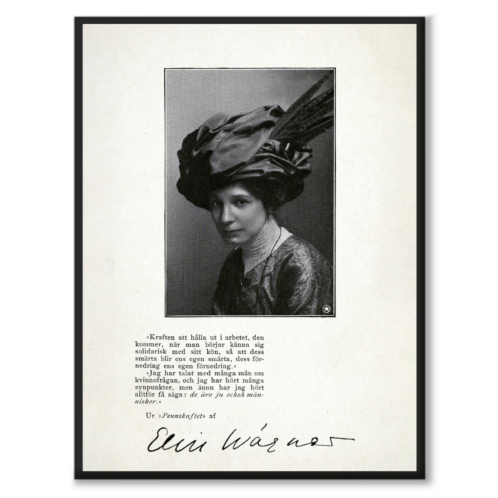 Den här bilden är ett urklipp ur Elin Wägners tredje roman Pennskaftet som utkom 1910 och blev en stor försäljningssuccé. På bilden ser vi ett porträtt av Elin med citat: