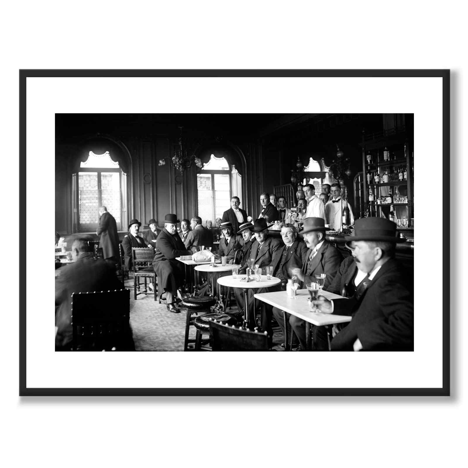 På fotografiet ser vid gäster och personal i samband med att baren stängdes i september år 1914. Bland gästerna ser vi bland annat operasångaren Oscar Bergström sittande som tredje person från höger.
