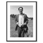 Gösta Ekman tillhörde en av landets mest betydelsefulla teater- och filmfamiljer, men formade också en helt egen plats i svensk kulturhistoria. Här fångas han mitt i en spontan stund, omgiven av sommarljus och natur, långt ifrån scenens strålkastare men ändå med samma odiskutabla närvaro. En tidlös bild av en konstnär som lämnat ett avtryck i generationer av svensk film och teater.