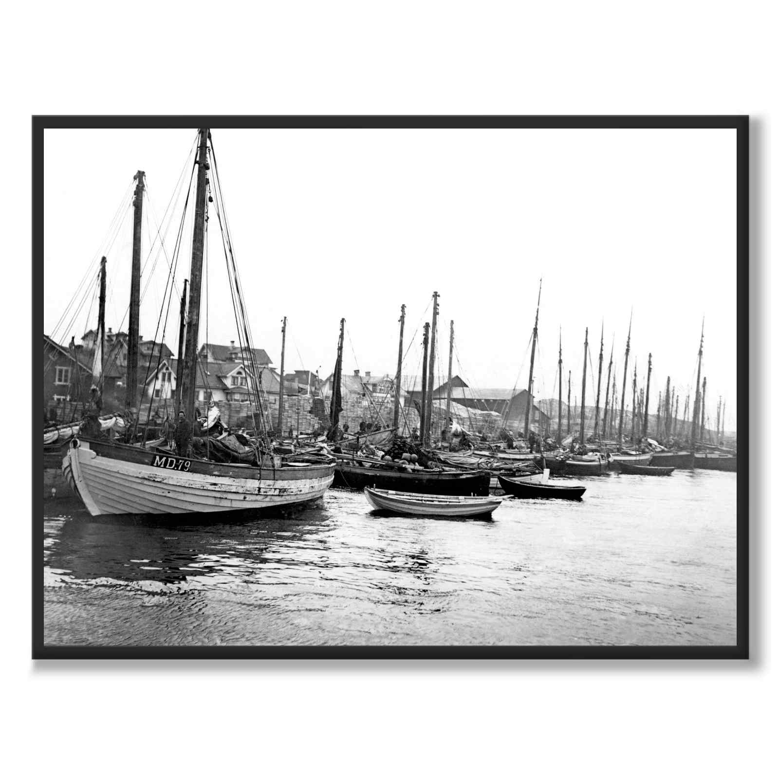Fiskebåten närmast har distriktsbeteckningen MD 79 och är registrerad med hemmahamn Rönnäng, en tätort i Tjörns kommun.