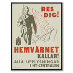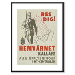 Affischen från runt 1940-talet uppmanar till att "Res dig! Hemvärnet kallar!" och var en del av en kampanj för att rekrytera fler personer till Hemvärnet, en frivillig försvarsorganisation i Sverige.