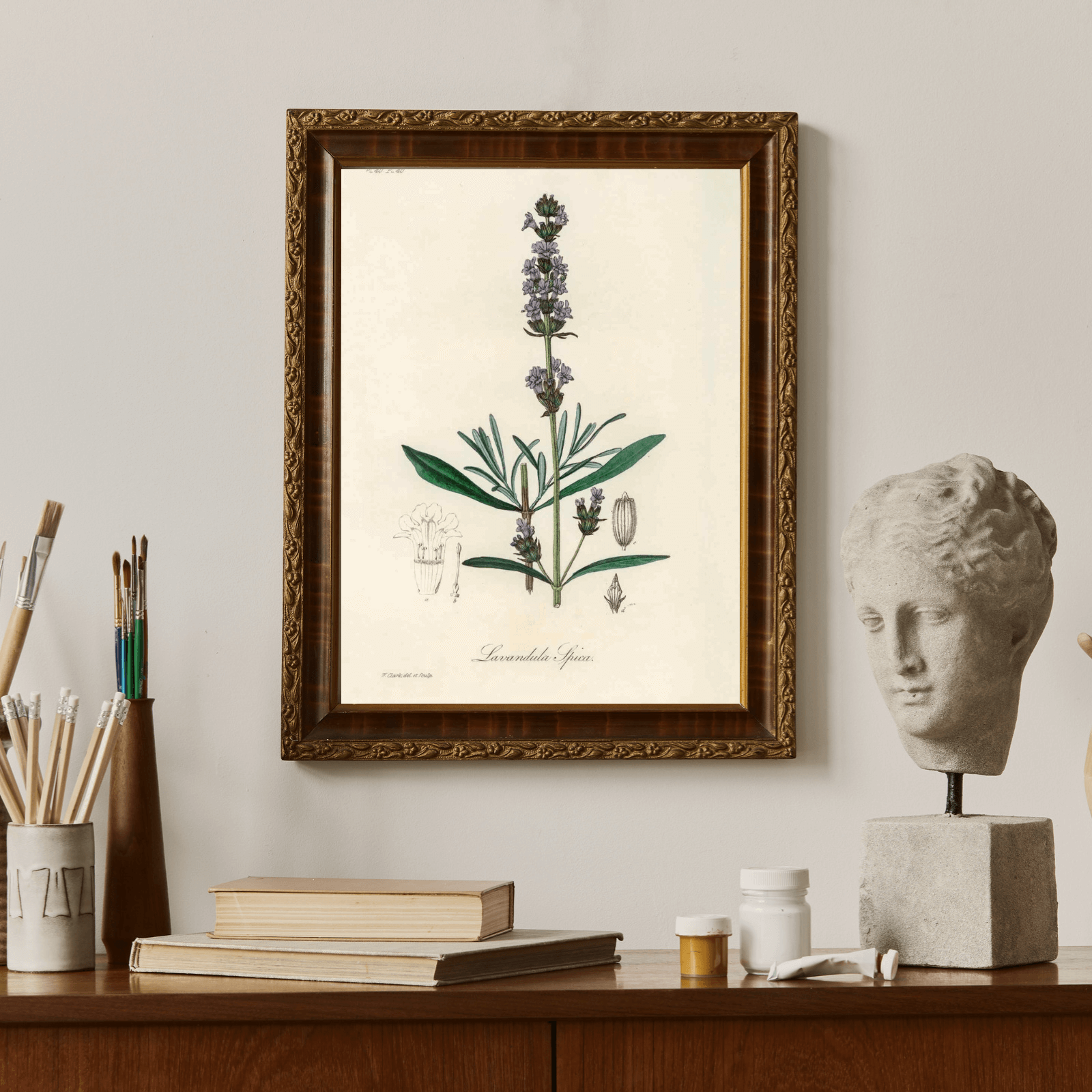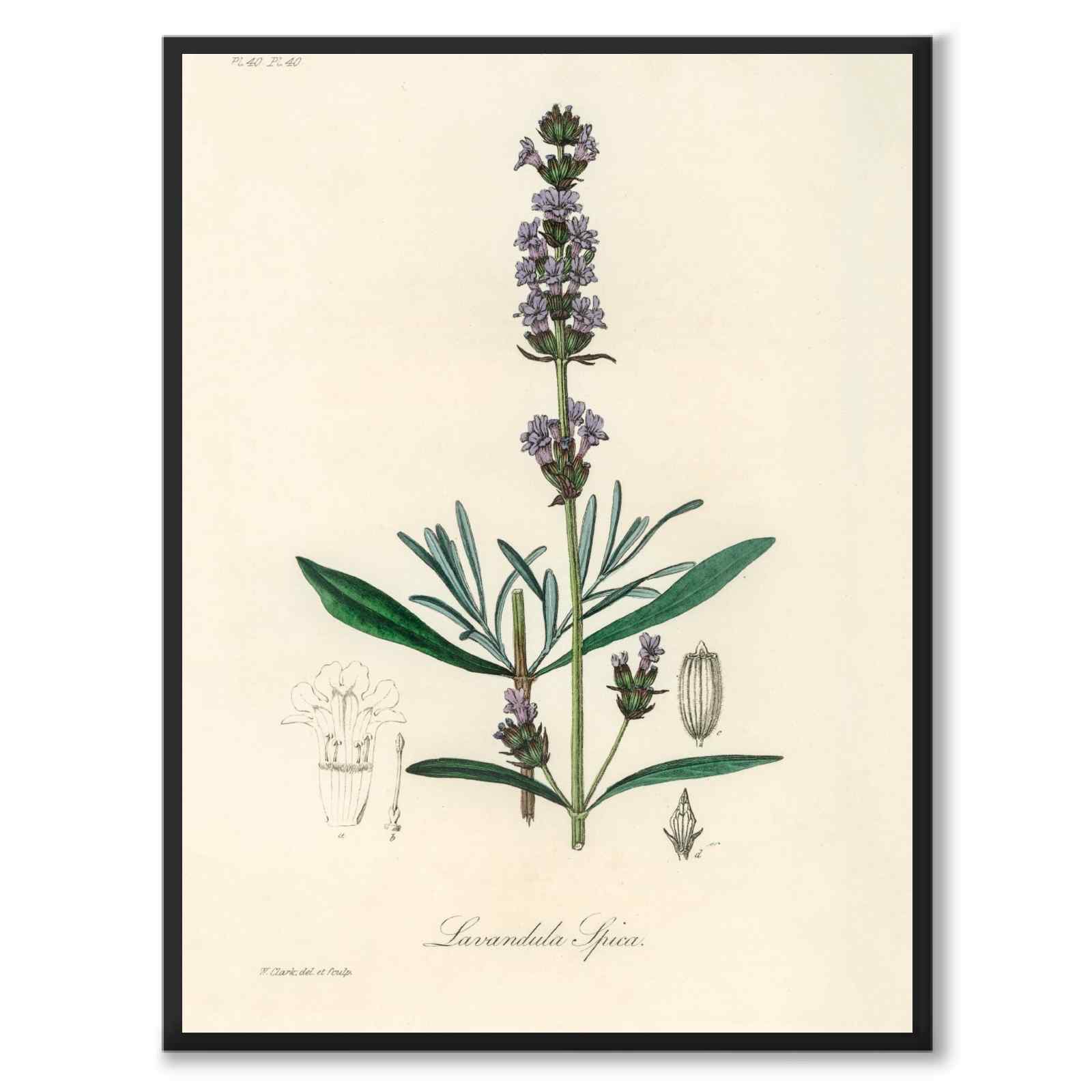 Poster med motiv av lavendel, på latin Lavandula ipica, från 1800-talet. Illustrationen är skapad av John Stephenson och James Morss Churchill.