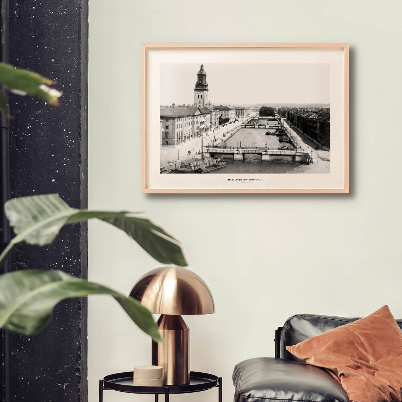 Lite längre bak till vänster i bilden ligger Gustav Adolfs torg och idag även Nordstan. En vacker bild som visar hur mindre segelbåtar med last gick långt in i kanalerna förr. Den Stora Hamnkanalen började byggas redan på 1620-talet på uppdrag av Göteborgs grundare Gustav II Adolf. Den skulle "tjäna den sjögående varutrafiken med mindre fartyg, som kommo med spannmål och andra nödiga varor". Ända fram till 1900-talet hade många privatpersoner sina båtar i Stora Hamnkanalen, men det förekommer inte längre.