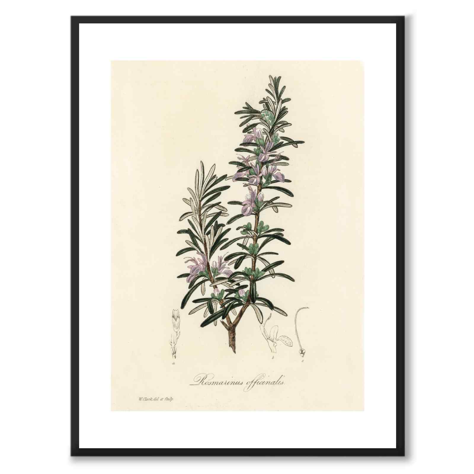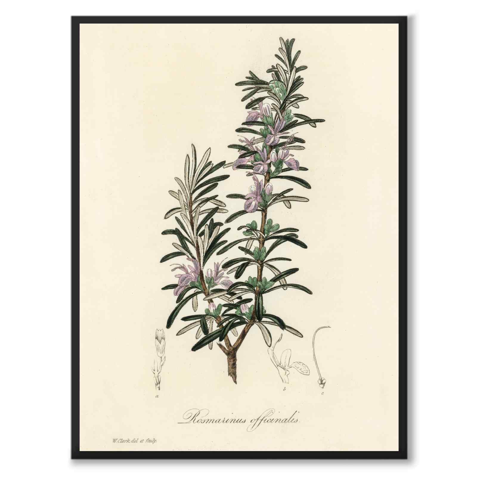 Poster med motiv av illustrationen Rosmarinus, även känt som rosmarin, från 1800-talet.