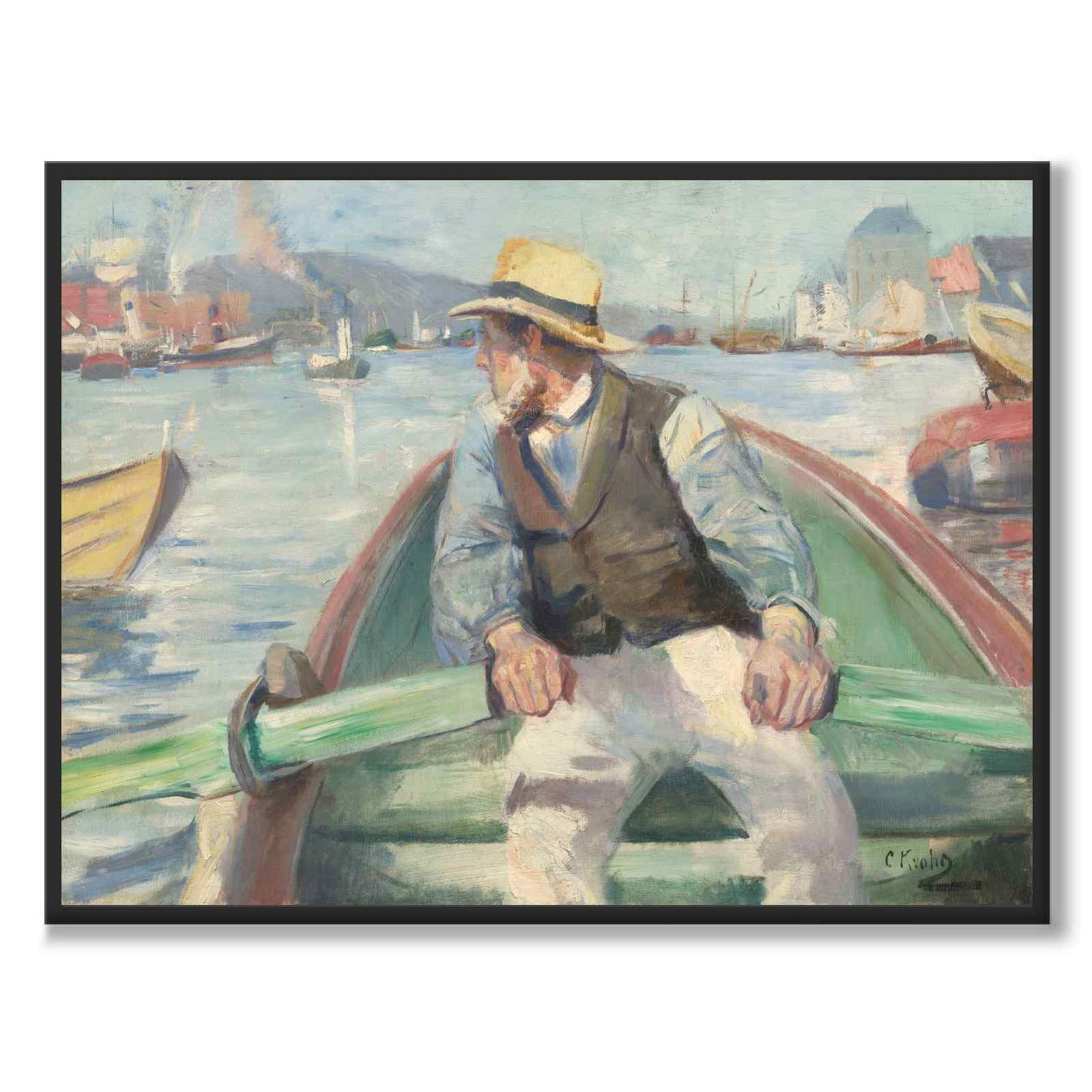 Målningen gjordes år 1884 och skildrar en man i en båt som ror fram genom vattnet mot hamnen i Bergen. I bakgrunden syns en livlig hamnmiljö med fartyg och byggnader som fångar en atmosfär av rörelse och liv.
