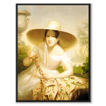 Thompson utnyttjade modet för allegoriska och romantiska porträtt och konstruerade sentimentaliserade visioner av unga kvinnor. På tavlan av den vackra kvinnan ser vi henne utsmyckad i säsongens senaste stil och placerad i en lummig trädgård komplett med den neoklassiska marmorurnan. Hennes gripande blick och informella hållning kompletteras av Thompsons ljusinfunderade hantering av färg.