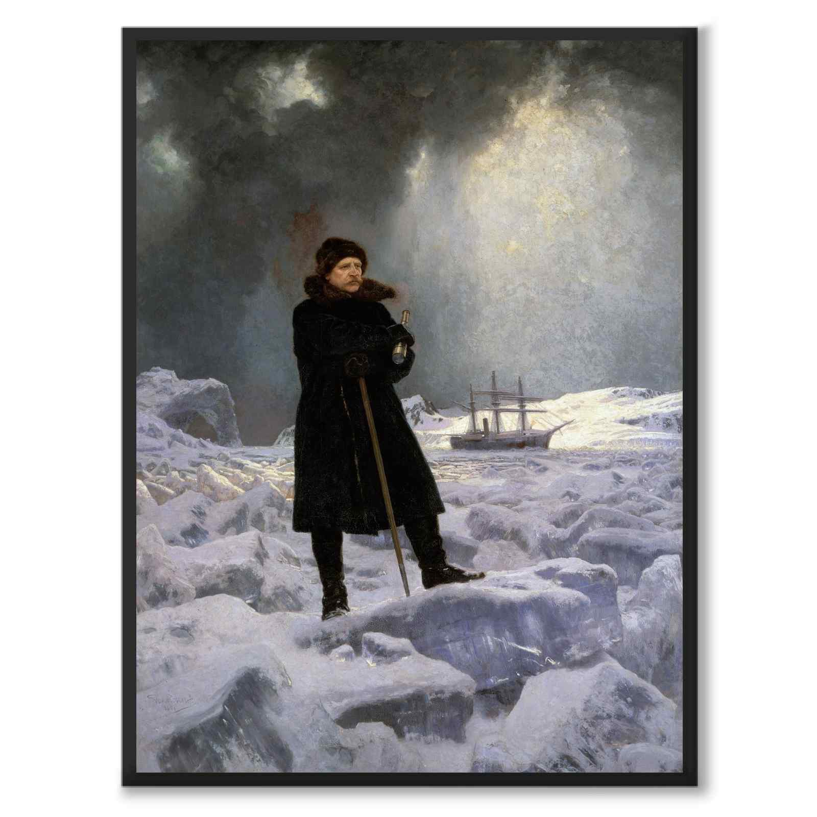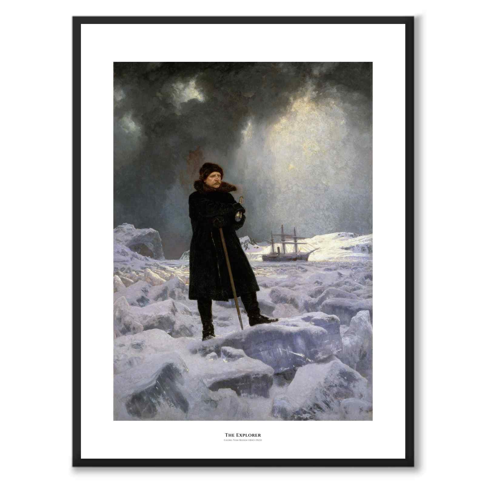 Poster med en målning av svenska konstnären Georg von Rosen från 1886. Verkets namn är Upptäcktsresanden A.E. Nordenskiöld och porträtterar upptäckaren med samma namn (Adolf Erik Nordenskiöld). Georg von Rosen var en svensk konstnär och greve. Nordenskiöld var en finlandssvensk adelsman upphöjd till friherre i Sverige, geolog, mineralog, polarfarare, upptäcktsresande, ledamot av Svenska Akademien samt även ledamot av Sveriges riksdag.