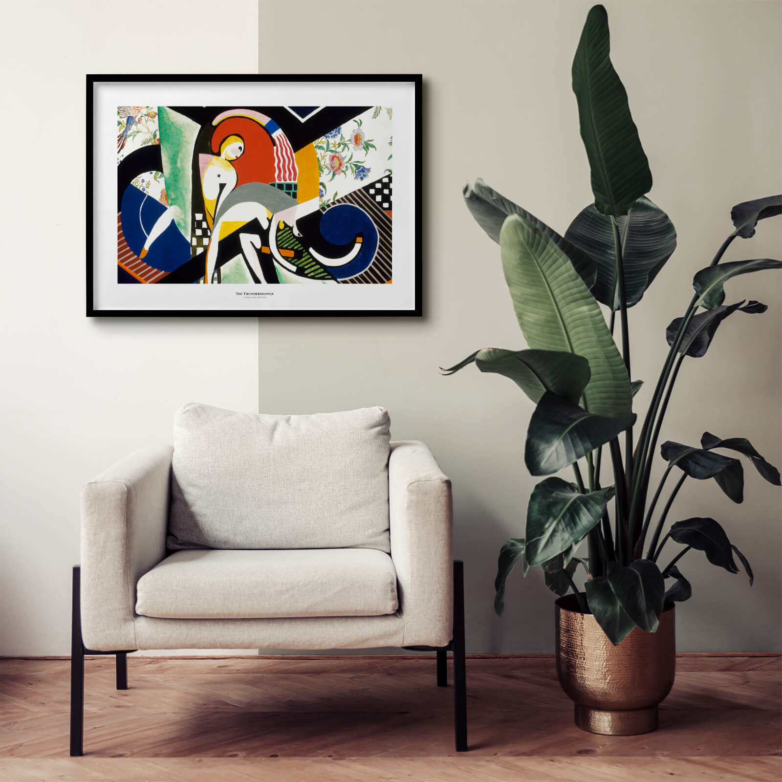 Poster med The Thundershower av H. Lyman Saÿen. Saÿen var en amerikansk vetenskapsman och konstnär. Som pionjär inom design av röntgenrör fick han patent på flera av sina uppfinningar under sitt liv. Som konstnär utmärkte han sig med sina vackra abstrakta verk. Han blev bland annat utbildad av Henri Matisse i Paris under tidigt 1900-tal.
