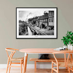 Poster med en bild på Torsgatan i Stockholm norrut från Kammakargatan. Året är 1897 och på bilden ser vi byggarbetare lägga rör. Till höger sitter fem pojkar och tittar på. Torsgatan är en gata som går mellan Norrmalm och Vasastan. Flera bolag har sina kontor längs med gatan som går parallellt med tågbanan.