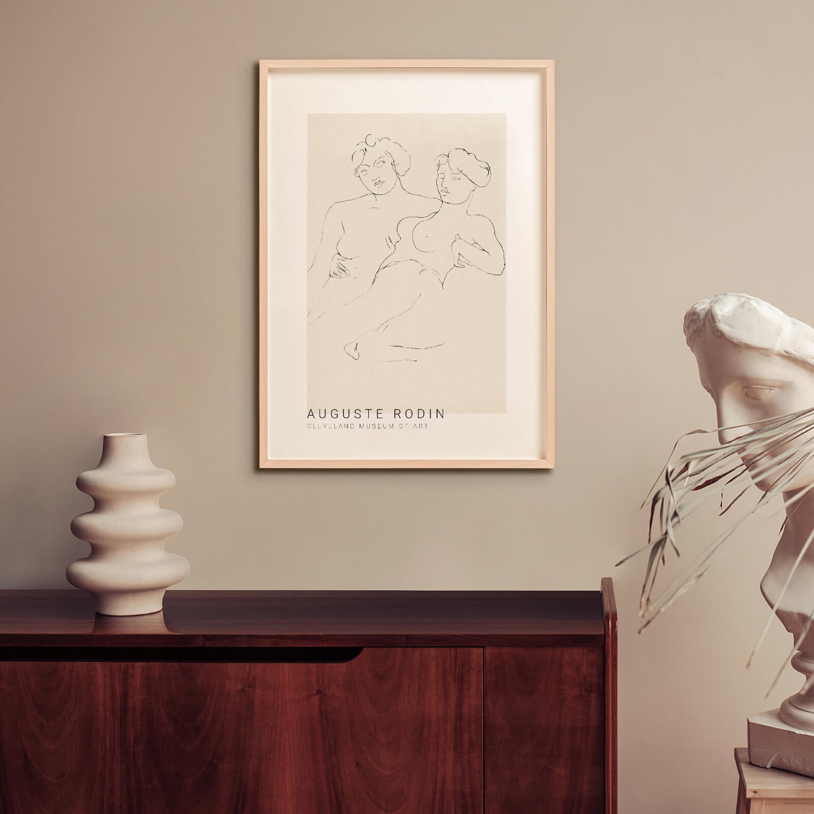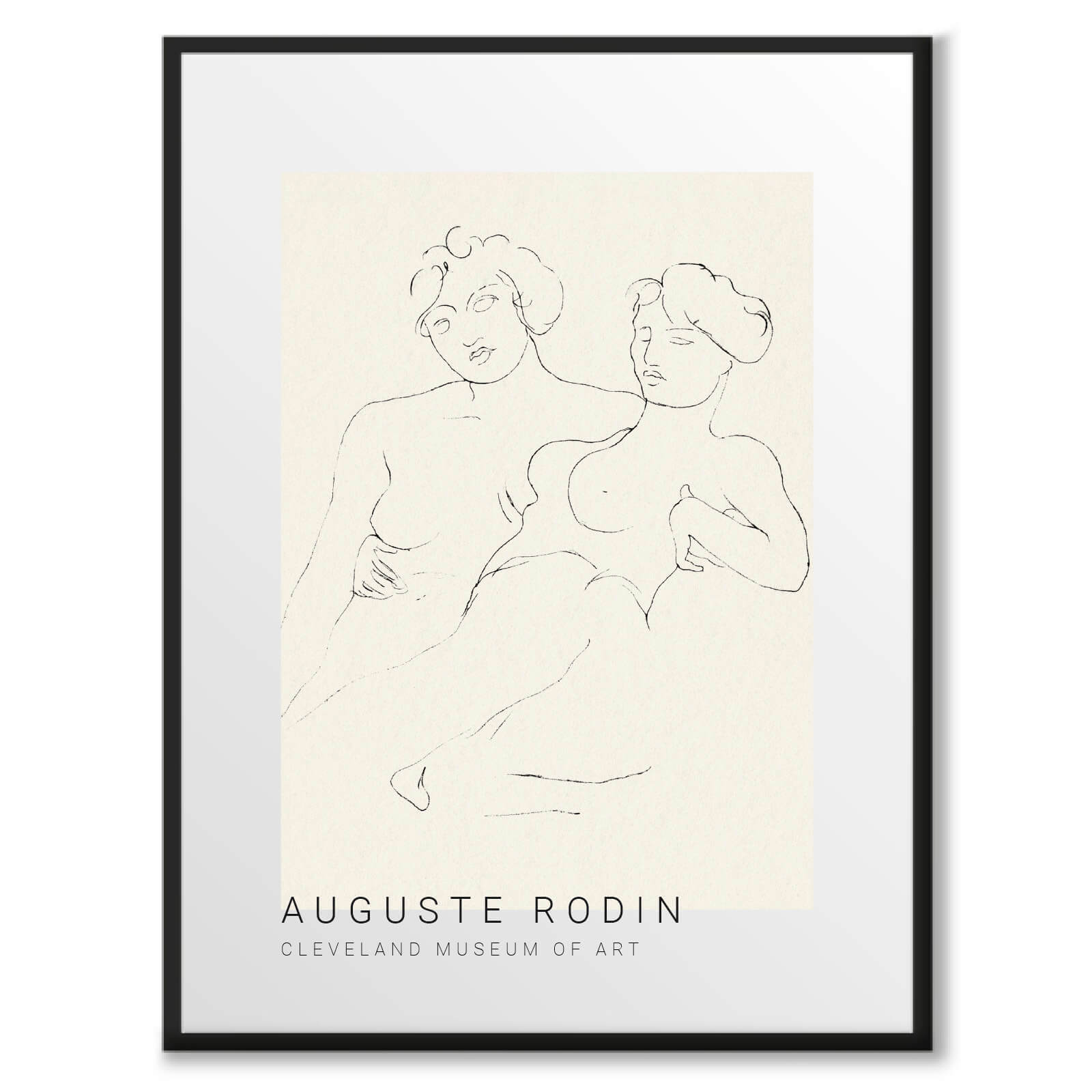 Poster med en vintage nude sketch av den kända skulptören Auguste Rodin (1840-1917). Motivet heter Two Figures och visar två nakna kvinnor som håller varandra nära. Originalet finns vid the the Cleveland Museum of Art.